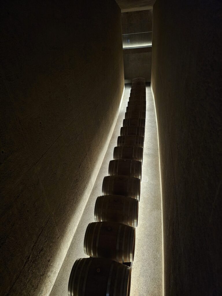 Wir trafen uns mit Leonora, die als ausgezeichnet Weinkennerin für die internationele PR des Weinguts zuständig ist. Es wurde ein unvergesslicher Tag in einem Weingut mit einer besonderen Vision und Philosophie, mit einer unglaublichen Fülle an Informationen, die von Leonora auf Ihre ganz eigene warmherzige Art überliefert wurden. In jahrelanger Planung durch RCR Arquitectes in Abstimmung mit der Familie Mateu, wurde der Neubau des Weinguts auf das Gelände des ehemaligen Gutshofes integriert. Dabei ist die historische Tradition des Geländes mit den Aspekten der Natur und der Landschaft verwoben worden. Bis ins kleinste Detail wurde ein Weingut geschaffen, dass mit optimalen Arbeitsbedingungen, wie einer Vertikal-Kelter und weiteren modernen Kellertechniken, die besten Rahmenbedingungen für die Herstellung von Weinen in bester Qualität schafft.