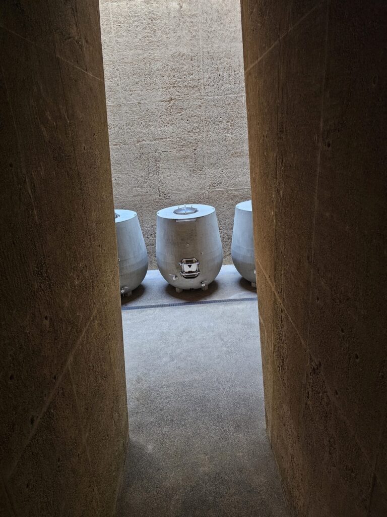 Die Tour führt weiter durch alle Bereiche der Vertikal-Kelter, in der die Schritte der Weinbereitung mit Hilfe der Schwerkraft erfolgen, wodurch das Pumpen des kostbaren Rebensafts entfällt und die Qualität des Weins gefördert wird. Nach der Station der Weinbereitung, geht der Weg über die verschiedenen Stationen der Weinreifung hinweg. Der Anblick von Stahlfässern, verschiedensten Holzfassarten bis hin zum Ausbau in modernen Betontanks steht für das Ziel besten Weine zu bereiten und alle Möglichkeiten des modernen Winemaking zu nutzen, ohne dabei die Tradition zu vernachlässigen.