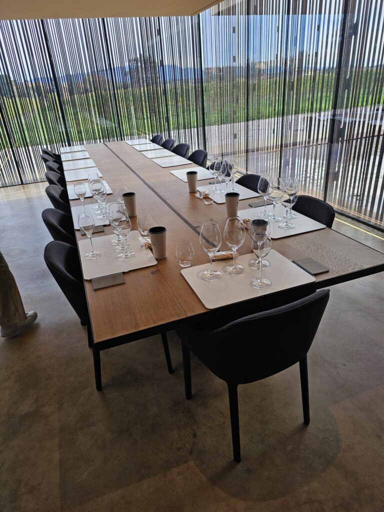 Im Anschluss an das Kellereigbäude führt der Weg wieder in die ehmaligen Gebäude des Gehöfts, die zu Tastingräumen, Weinshop und einer Weinbar, dem Celler 1923, umgewidmet wurden. Bei einem umfangreichen Tasting zeigte uns Leonora ein Teil-Spektrum der Weine von Perelada, die dann auch freundlicherweise unser Essen in der Weinbar begleiteten. Diesen köstlichen Abschluss einer Führung durch das Weingut sollte man auf keinen Fall Fall verpassen.
