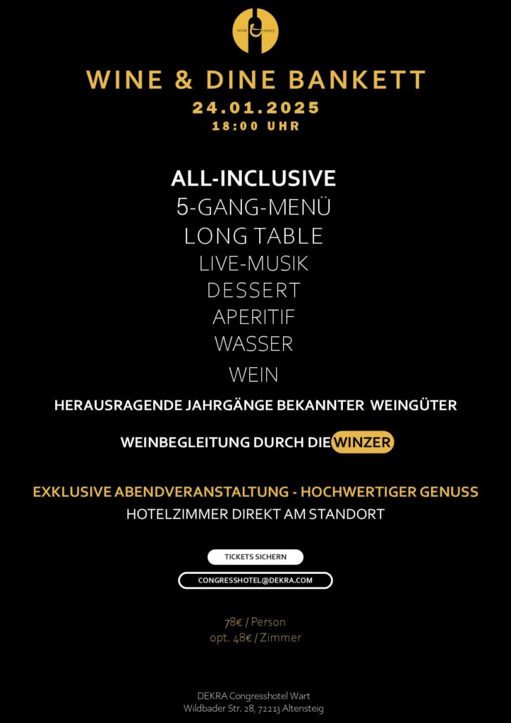 Eine Veranstaltung aus der Reihe Wine&Events im Nord-Schwarzwald DEKRA Congresshotel & Congress Center Wart